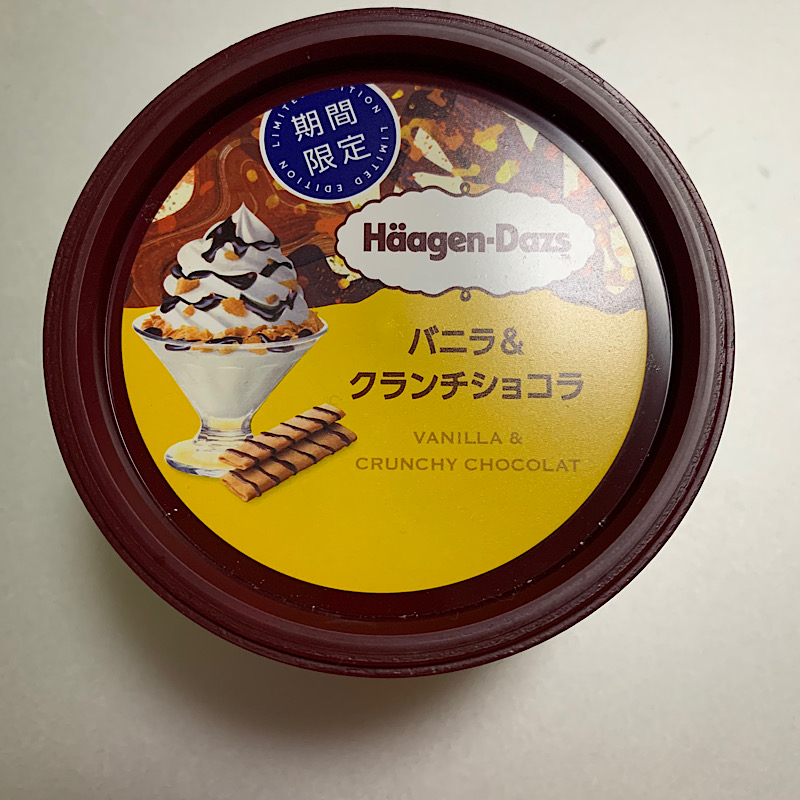 そんな私に好きなおやつの話を振ってきたので、チョコレートと答えると、なんと!勧めてきたのが「期間限定ハーゲンダッツ バニラ&クランチショコラ」だった。